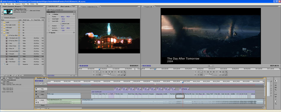 For Roland Emmerich's talk at fmx/07, I created a short trailer with notable VFX shots from Emmerich's movies. The trailer was also shown when Mr Emmerich visited Filmakademie the next day.