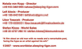 Directed by Nataša von Kopp "A film about an old man with no needs and a remarkable past, facing the hype as an artist against his will"