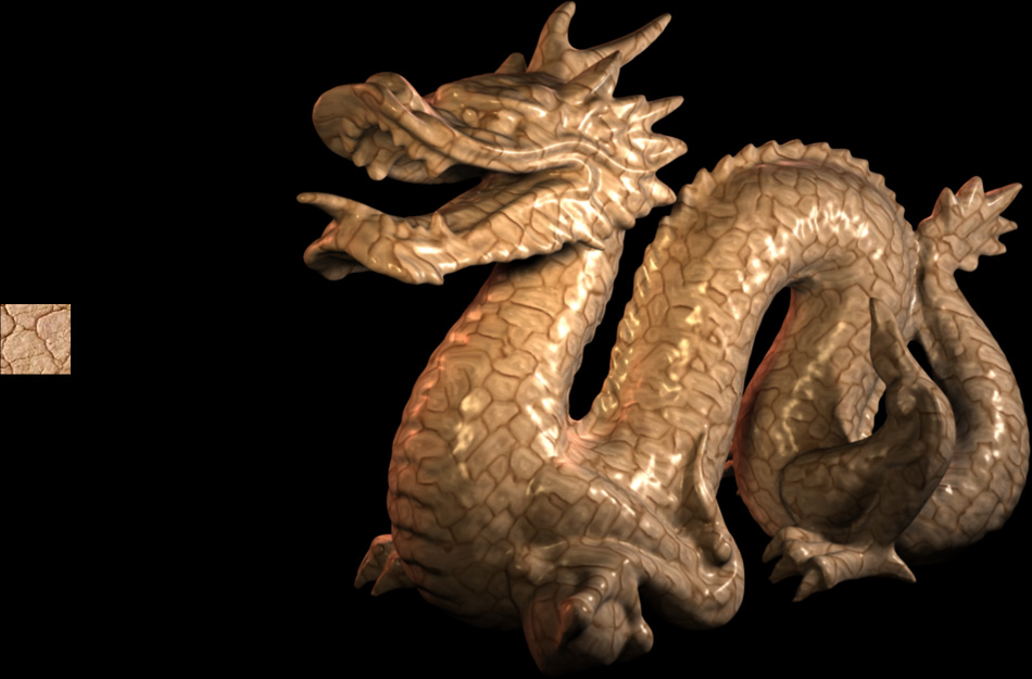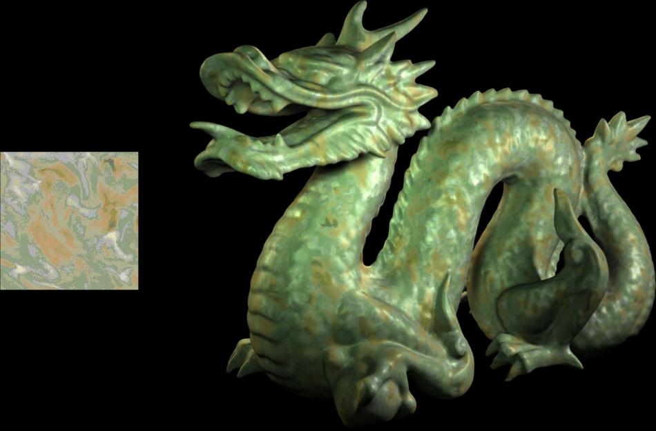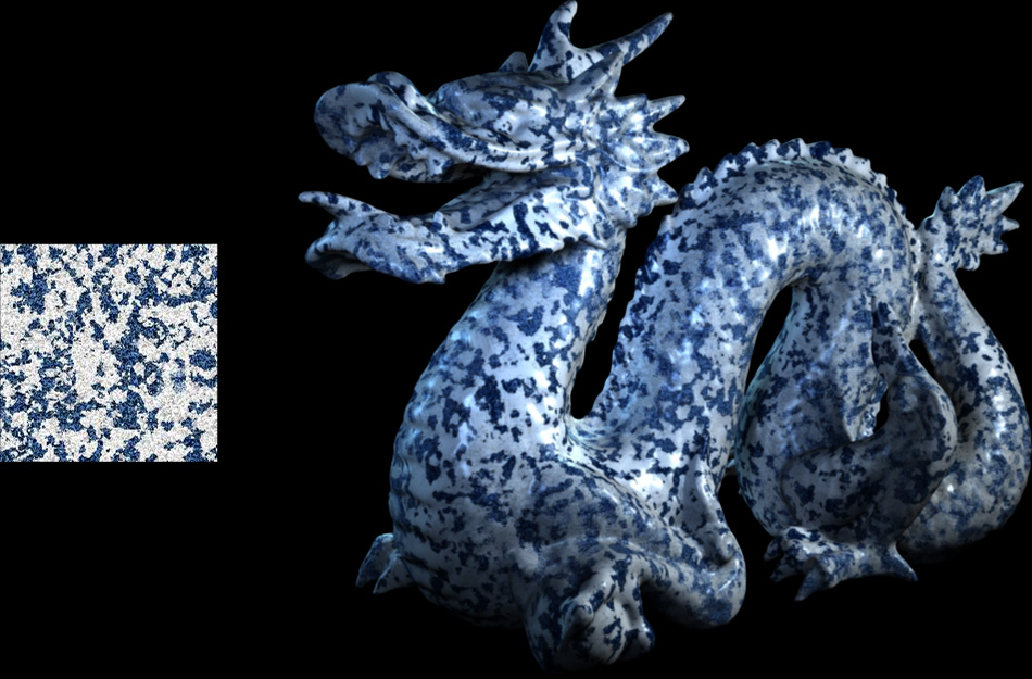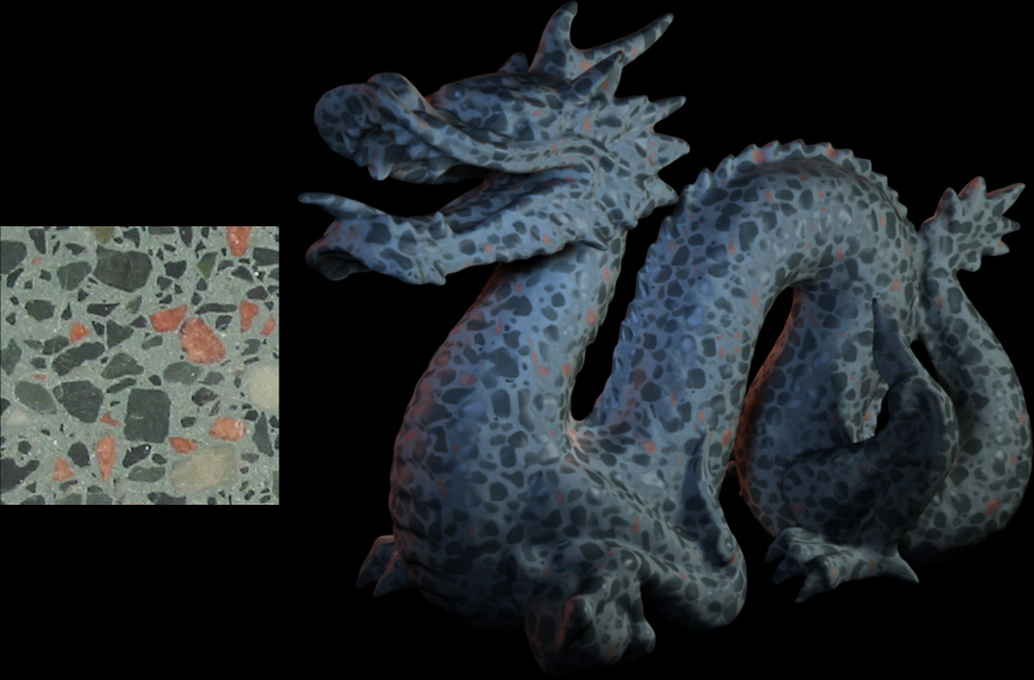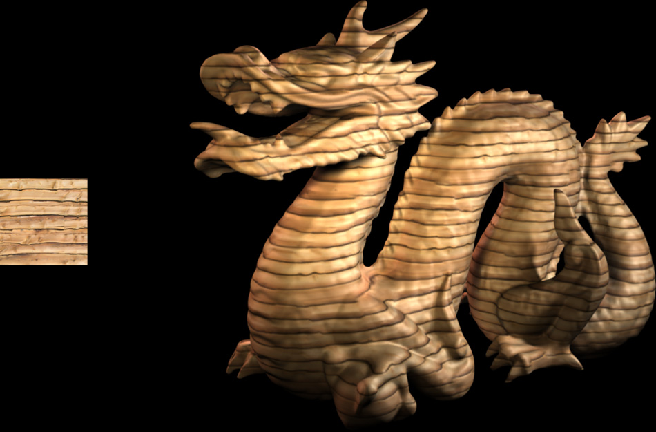Together with fellow TD students Jörg Unterberg and Andreas Rohr, I developed a plug-in for Maya that loads volume texture files that were created by a tool based on the work done by Johannes Kopf et al. described in the SIGGRAPH 2007 paper "Solid Texture Synthesis from 2D Exemplars". The images on the right show the exemplars from which the volume texture files were created, and renderings of the Stanford Dragon with the generated volume textures applied. johanneskopf.de/publications/solid/johanneskopf.de/publications/solid/plugin/index.html |